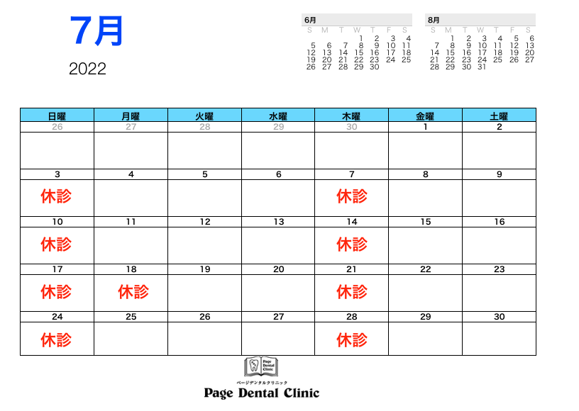 Top 当院について 診療科目 初めての方へ スタッフ 設備紹介 料金表 アクセス 最新情報 Top 当院について 診療科目 予防歯科 子ども歯科 マタニティ歯科 むし歯・歯周病治療 補綴・修復について 専門治療 矯正歯科 初めての方へ スタッフ 設備紹介 料金表 アクセス 最新情報 048-729-6483 BLOG最新情報 7月の休診日について 2022年06月24日 [診療時間のお知らせ] 7月の休診日は、下記の通りになります。 毎週月曜日は、スタッフミーティングのため 9:00〜9:30まで休診とさせていただきます。 18日月曜日は、祝日のため休診とさせていただきます。 ご迷惑をお掛け致しますが、何卒よろしくお願い致します。 < 前の記事へ 次の記事へ > ■最近の記事 2月の診療時間のお知らせ 2026年の新習慣。歯科医院を「マイナスをゼロにする場所」から「プラスを積み上げる場所」へ 年始のご挨拶 1月の診療時間のお知らせ 年末年始休業のお知らせ ■カテゴリー ケア用品紹介 セミナー・イベント情報 ブルーラジカルP-01について ブログ 学会・セミナー 新型コロナウイルスに関するお知らせ 新着情報 未分類 診療時間のお知らせ ■月別 2026年1月 2025年12月 2025年11月 2025年10月 2025年9月 2025年8月 2025年7月 2025年6月 2025年5月 2025年4月 2025年3月 2025年2月 2025年1月 2024年12月 2024年11月 2024年10月 2024年9月 2024年8月 2024年7月 2024年6月 全月別