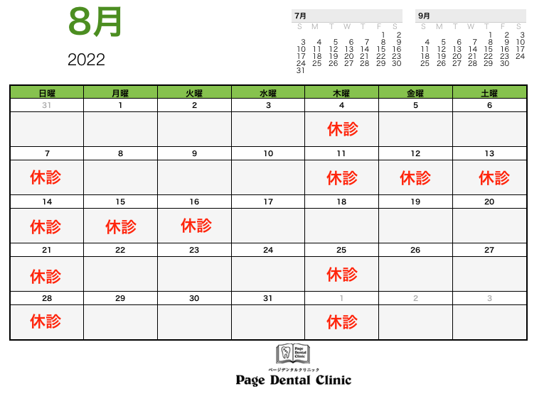 Top 当院について 診療科目 初めての方へ スタッフ 設備紹介 料金表 アクセス 最新情報 Top 当院について 診療科目 予防歯科 子ども歯科 マタニティ歯科 むし歯・歯周病治療 補綴・修復について 専門治療 矯正歯科 初めての方へ スタッフ 設備紹介 料金表 アクセス 最新情報 048-729-6483 BLOG最新情報 8月の休診日について 2022年07月13日 [診療時間のお知らせ] 8月の休診日は、下記の通りになります。 毎週月曜日は、スタッフミーティングのため 9:00〜9:30まで休診とさせていただきます。 11日木曜日 〜 16日火曜日を夏季休暇にさせていただきます。 ご迷惑をお掛け致しますが、何卒よろしくお願い致します。 < 前の記事へ 次の記事へ > ■最近の記事 2月の診療時間のお知らせ 2026年の新習慣。歯科医院を「マイナスをゼロにする場所」から「プラスを積み上げる場所」へ 年始のご挨拶 1月の診療時間のお知らせ 年末年始休業のお知らせ ■カテゴリー ケア用品紹介 セミナー・イベント情報 ブルーラジカルP-01について ブログ 学会・セミナー 新型コロナウイルスに関するお知らせ 新着情報 未分類 診療時間のお知らせ ■月別 2026年1月 2025年12月 2025年11月 2025年10月 2025年9月 2025年8月 2025年7月 2025年6月 2025年5月 2025年4月 2025年3月 2025年2月 2025年1月 2024年12月 2024年11月 2024年10月 2024年9月 2024年8月 2024年7月 2024年6月 全月別