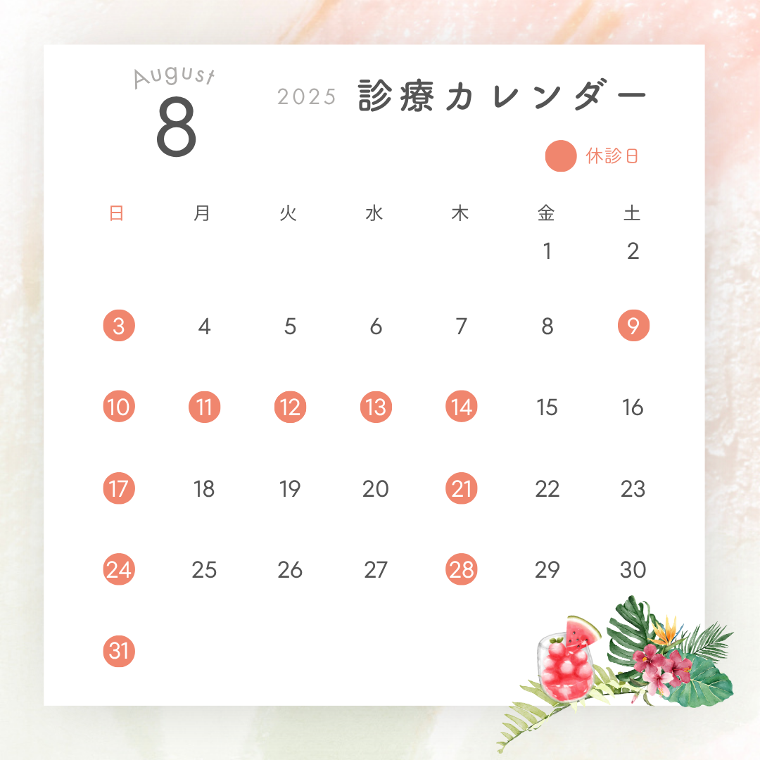 8月の診療時間のお知らせ