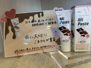 この時期、受付でぜひチェックしていただきたいのが、期間限定の「MIペースト チョコレート味」です。